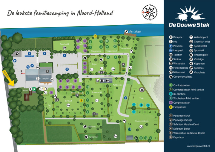 Op deze pagina krijg je een indruk van de verschillende velden en plekken op Camping De Gouwestek.